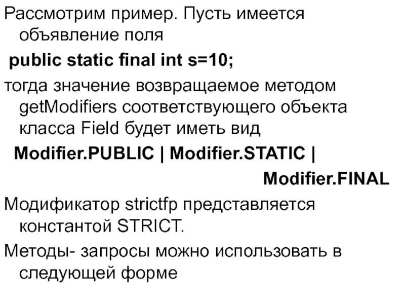 тогда значение возвращаемое методом getModifiers соответствующего объекта класса Field будет иметь вид