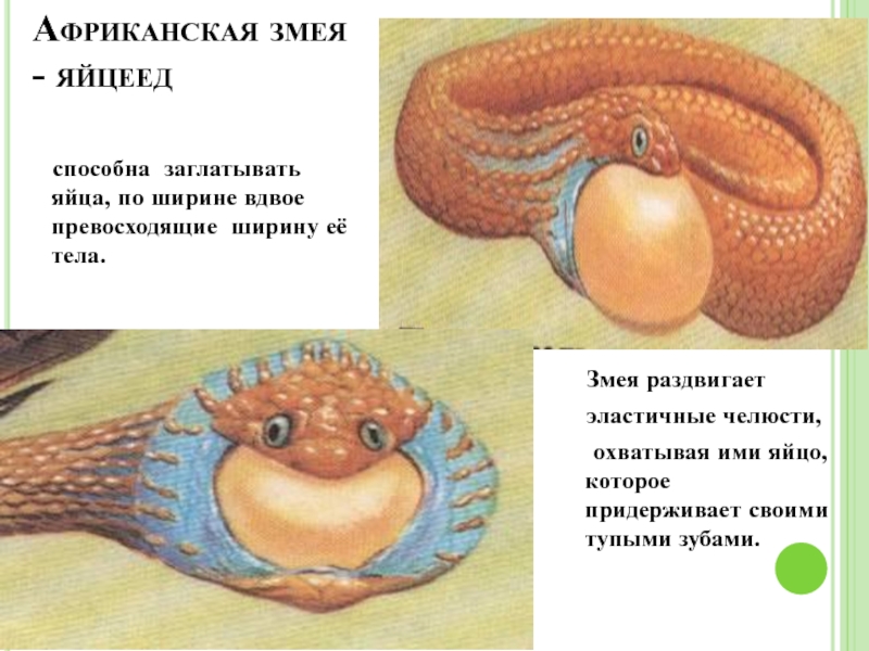 охватывая ими яйцо, которое придерживает своими тупыми зубами.