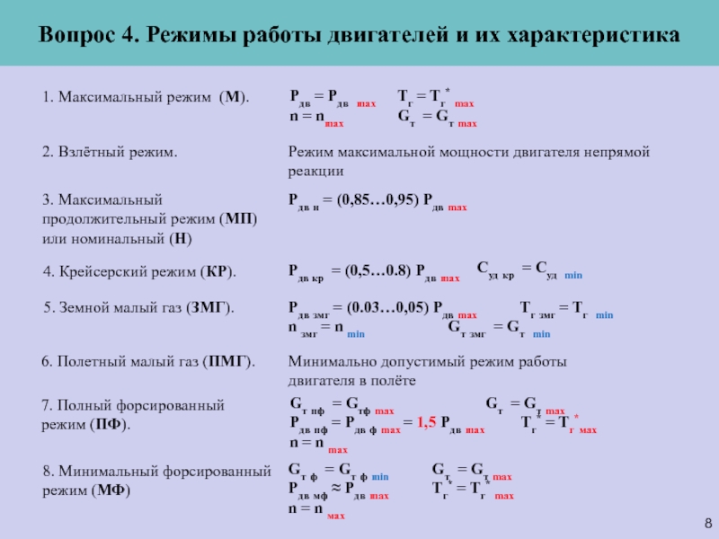 Вопрос 4. Режимы работы двигателей и их характеристика