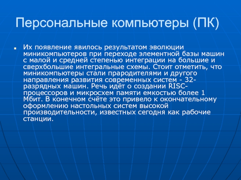 Их появление явилось результатом эволюции миникомпьютеров при переходе элементной