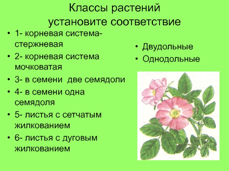 2- у смородины- стержневой корень. К какому классу относят смородину