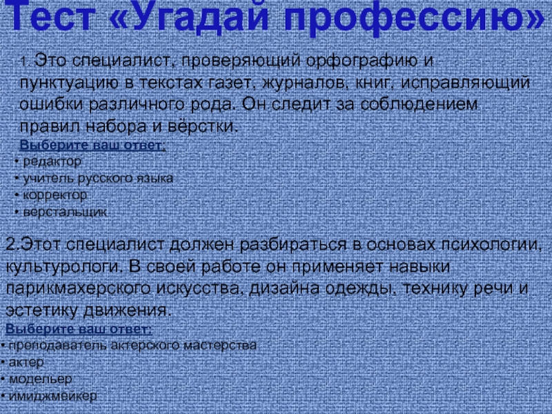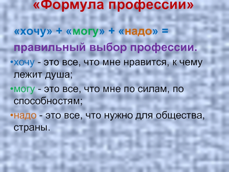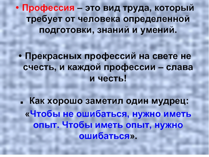Профессия – это вид труда, который требует от человека определенной подготовки,