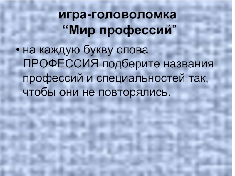 на каждую букву слова ПРОФЕССИЯ подберите названия профессий