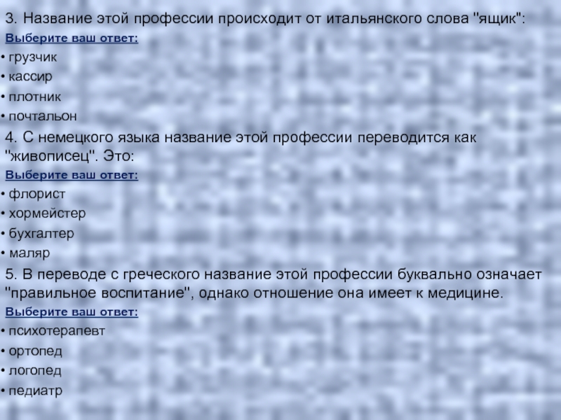 3. Название этой профессии происходит от итальянского слова "ящик":