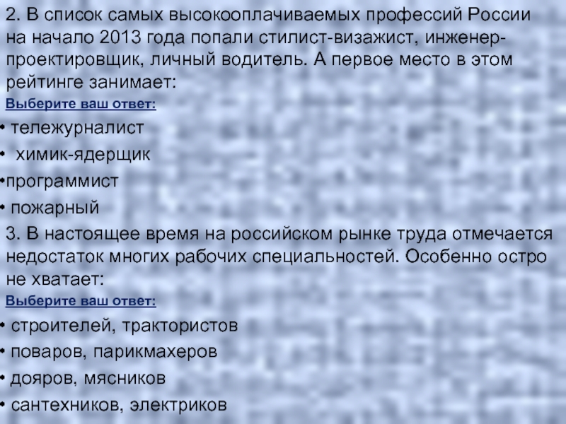 2. В список самых высокооплачиваемых профессий России на начало 2013 года