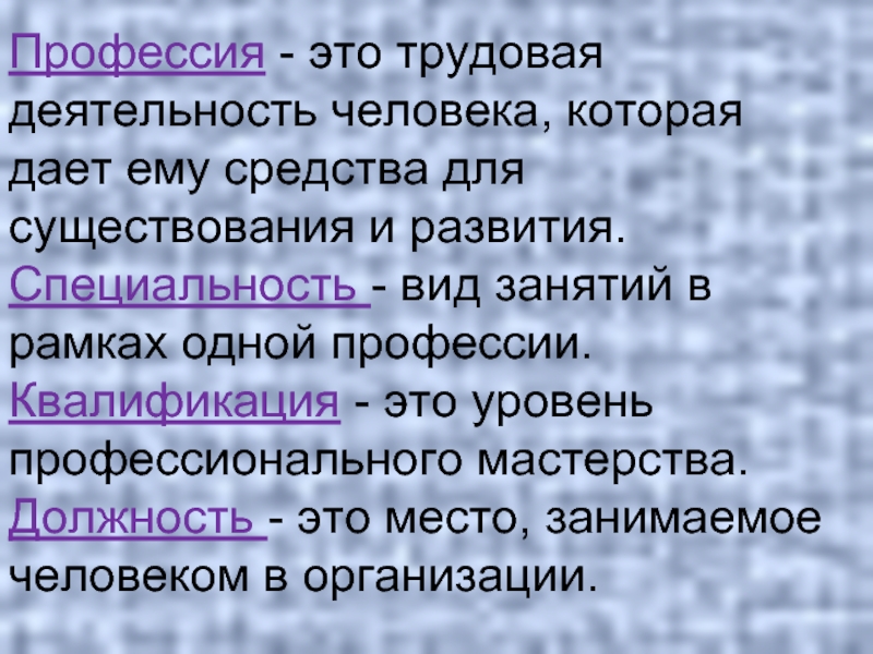 Профессия - это трудовая деятельность человека, которая дает ему средства для