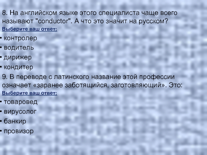 8. На английском языке этого специалиста чаще всего называют "conductor". А