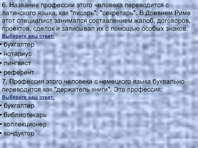 6. Название профессии этого человека переводится с латинского языка, как "писарь",