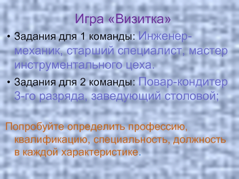 Попробуйте определить профессию, квалификацию, специальность, должность в каждой характеристике.