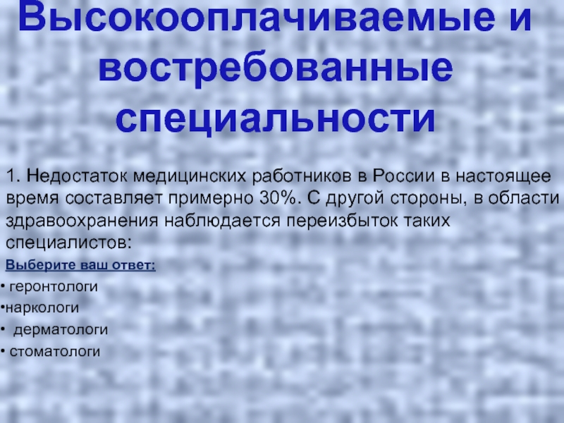 1. Недостаток медицинских работников в России в настоящее время составляет примерно