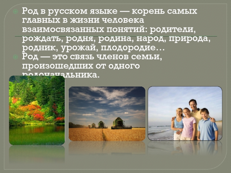 Слайд 14Род в русском языке — корень самых главных в жизни человека