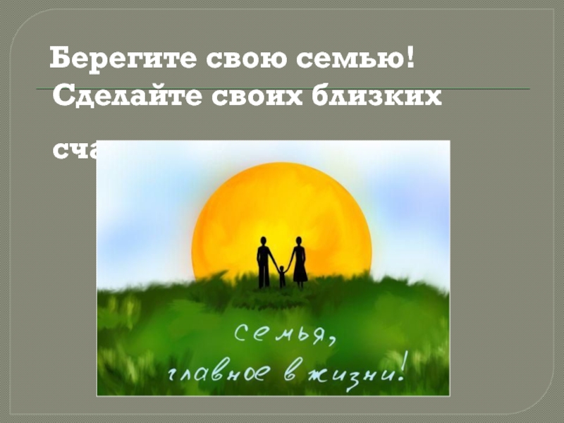 Слайд 17 Берегите свою семью! Сделайте своих близких счастливыми.