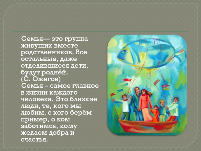 Слайд 2  Семья— это группа живущих вместе родственников. Все остальные, даже