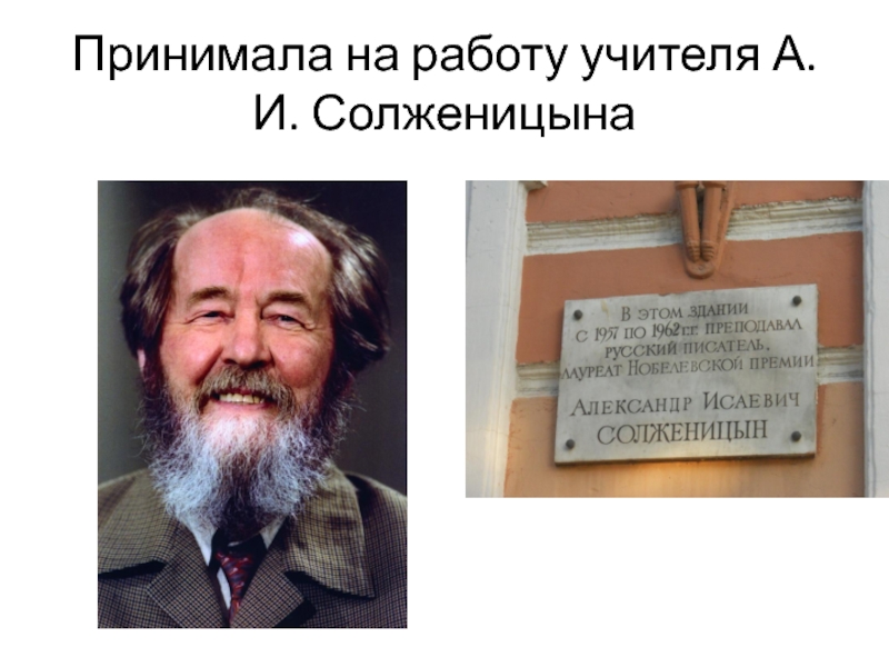 Слайд 7Принимала на работу учителя А.И. Солженицына
