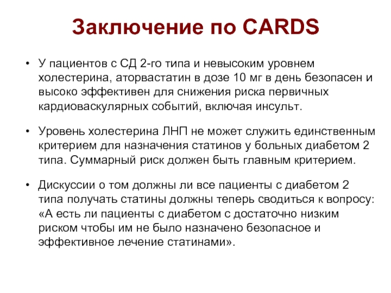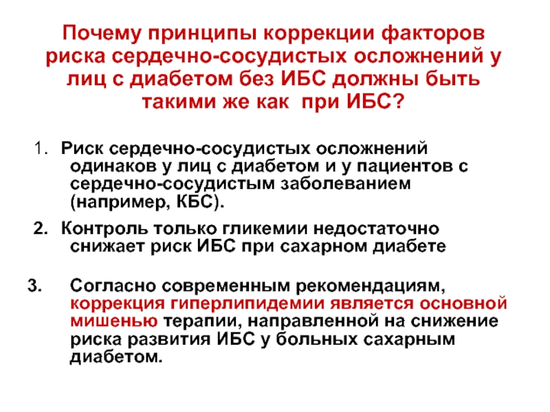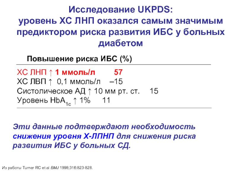 Эти данные подтверждают необходимость снижения уровня Х-ЛПНП для снижения риска развития ИБС у больных СД.