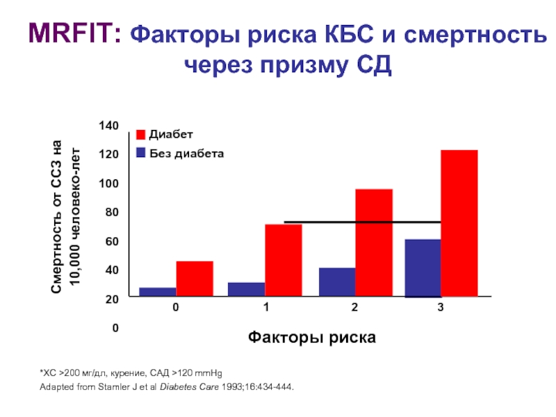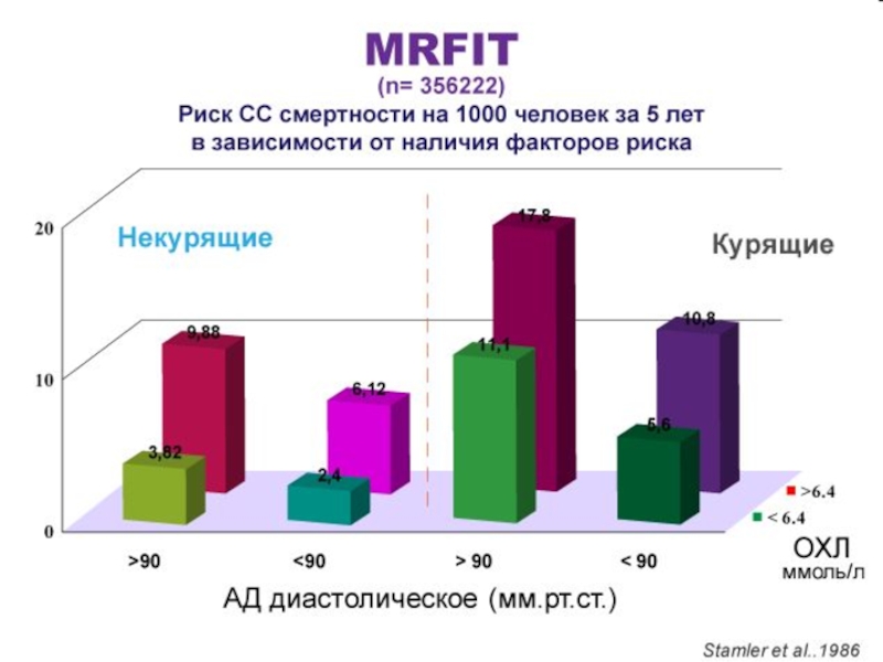 *ХС >200 мг/дл, курение, САД >120 mmHg