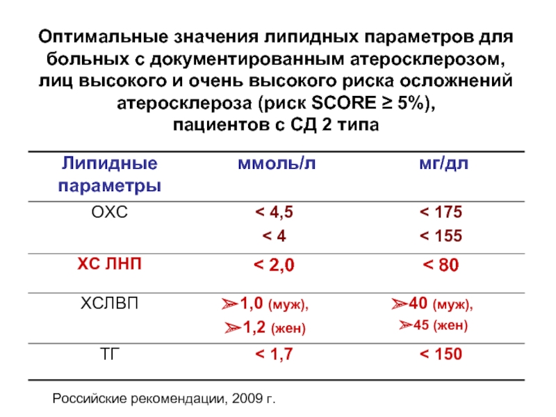 Апо В -100 – возможная (optional) цель для терапии у пациентов высокого риска ( < 80 мг/дл)