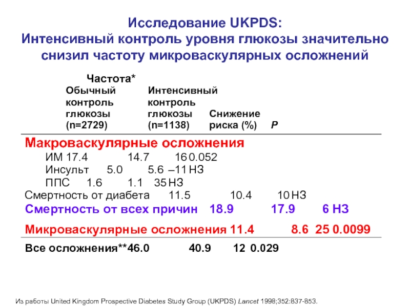 Интенсивный контроль уровня глюкозы значительно снизил частоту микроваскулярных осложнений
