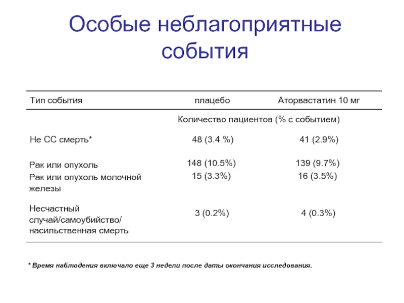* Время наблюдения включало еще 3 недели после даты окончания исследования.