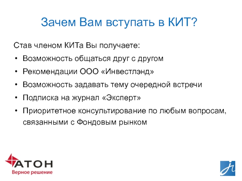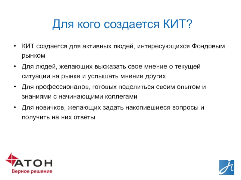КИТ создается для активных людей, интересующихся Фондовым рынком