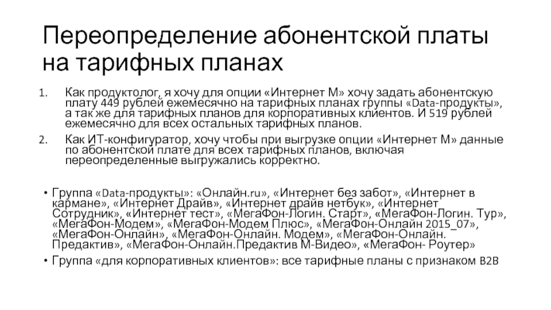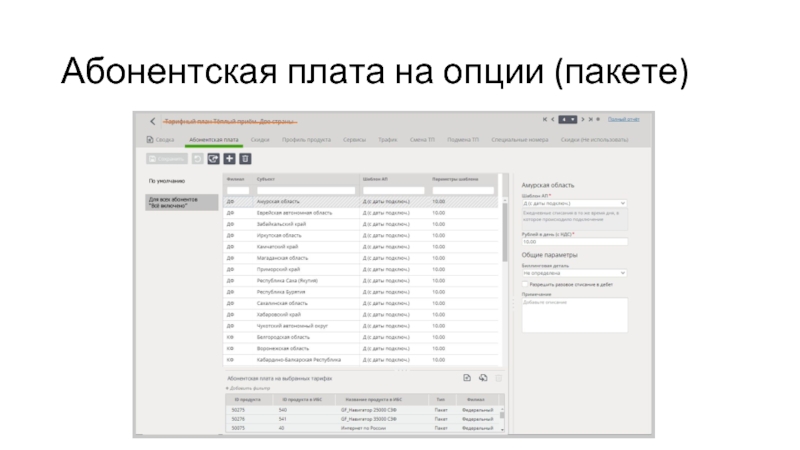Слайд 4Переопределение абонентской платы на тарифных планах
