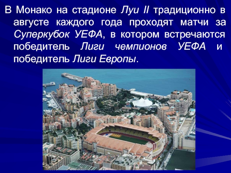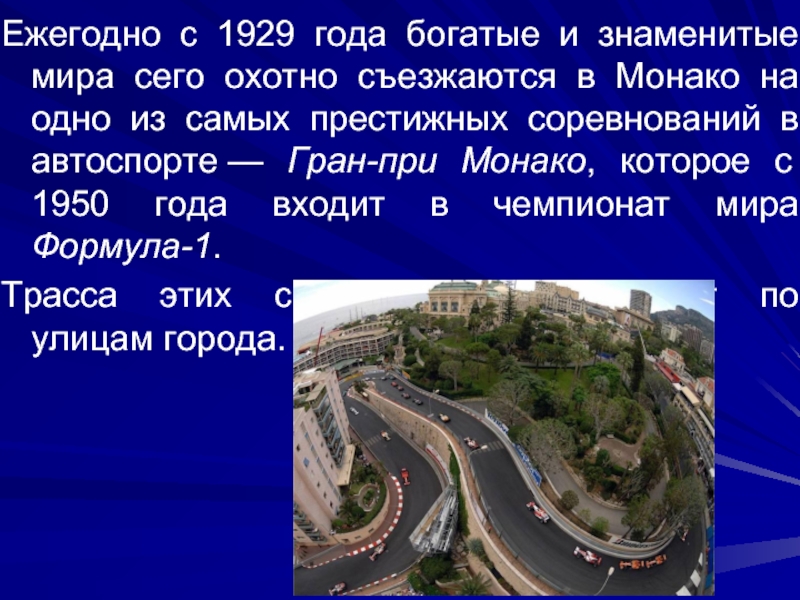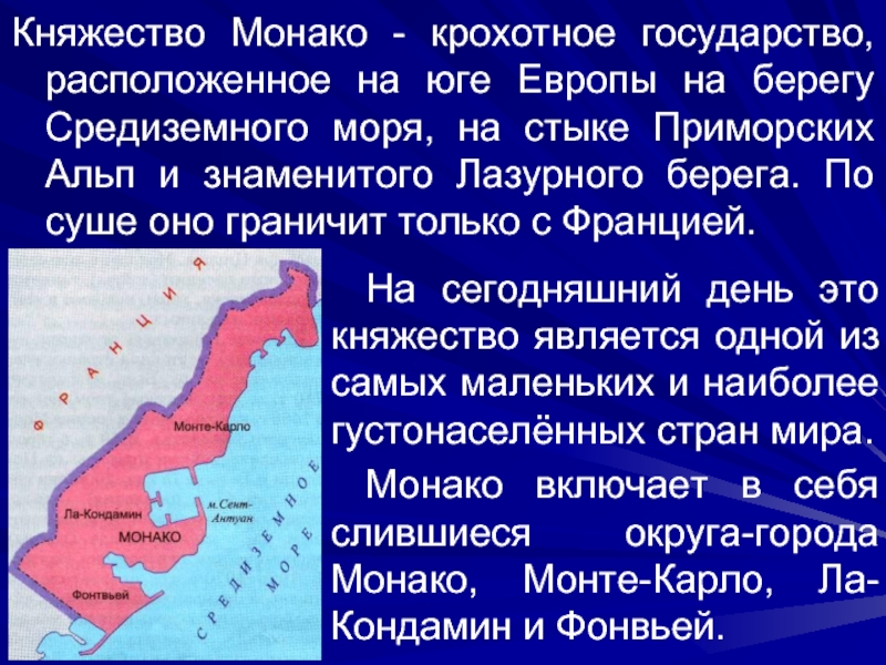 Монако включает в себя слившиеся округа-города Монако, Монте-Карло, Ла-Кондамин и Фонвьей.