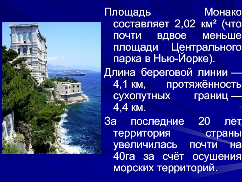 На сегодняшний день это княжество является одной из самых маленьких и наиболее густонаселённых стран мира.