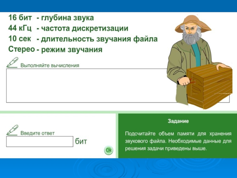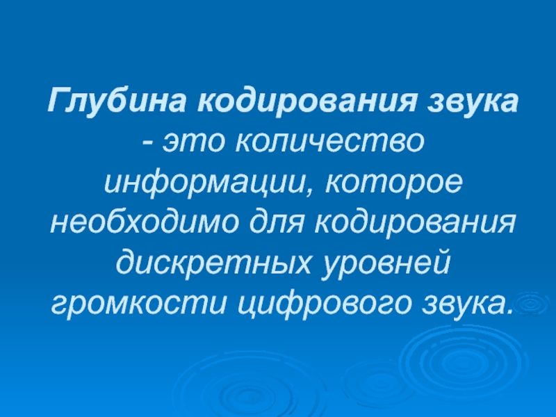 Слайд 16Глубина кодирования звука - это количество информации, которое необходимо для кодирования