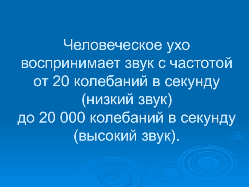 Слайд 7Человеческое ухо воспринимает звук с частотой от 20 колебаний в секунду