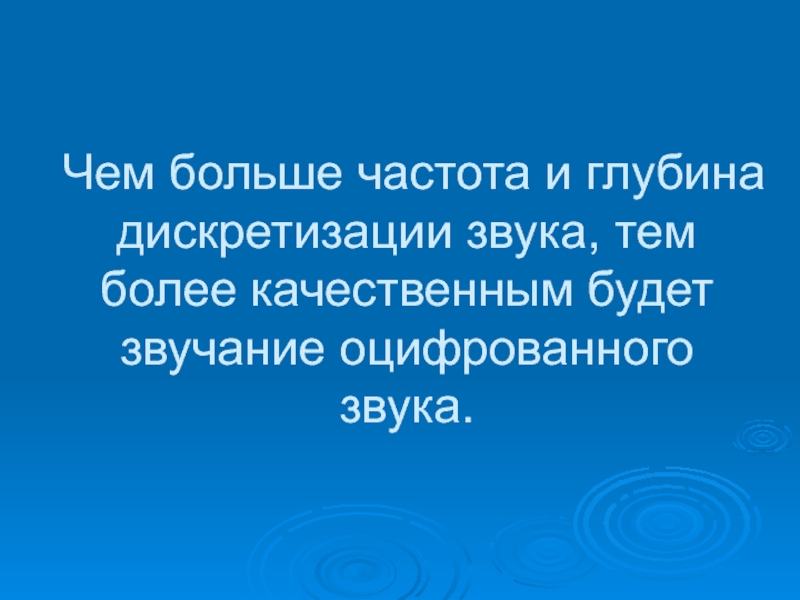 Слайд 21Чем больше частота и глубина дискретизации звука, тем более качественным будет