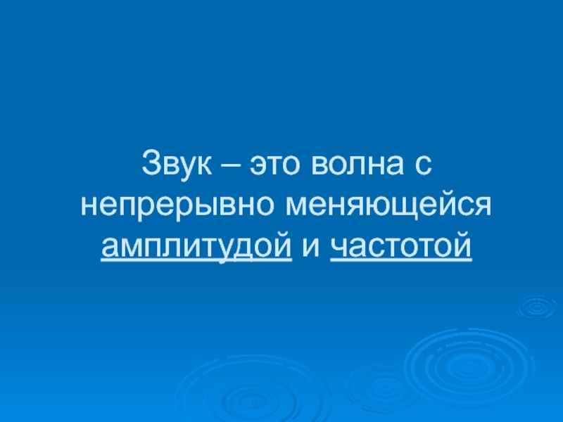 Слайд 4Звук – это волна с непрерывно меняющейся амплитудой и частотой