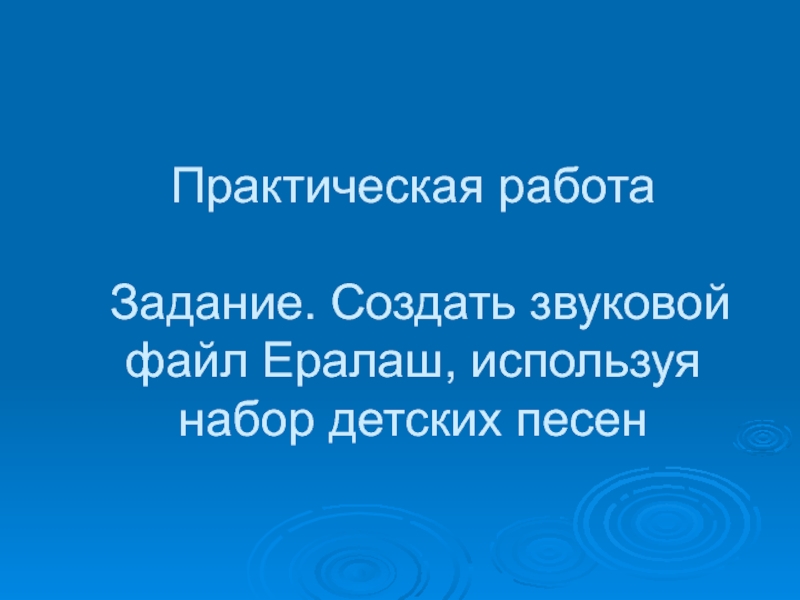 Задание. Создать звуковой файл Ералаш, используя набор детских песен