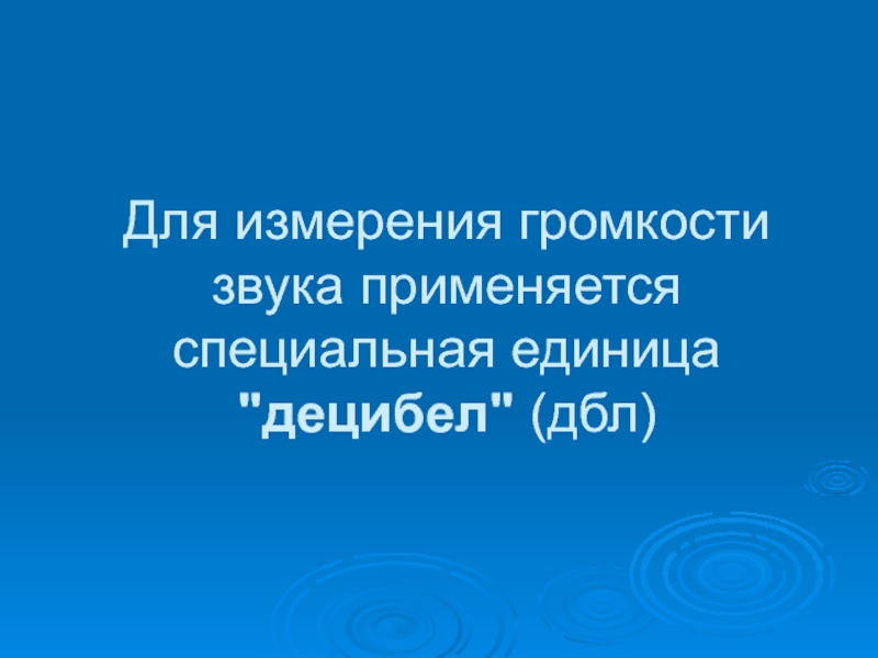 Слайд 8Для измерения громкости звука применяется специальная единица "децибел" (дбл)