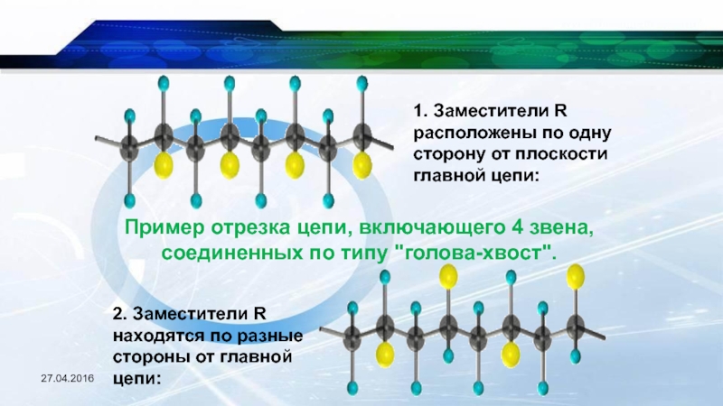 Пример отрезка цепи, включающего 4 звена, соединенных по типу "голова-хвост".