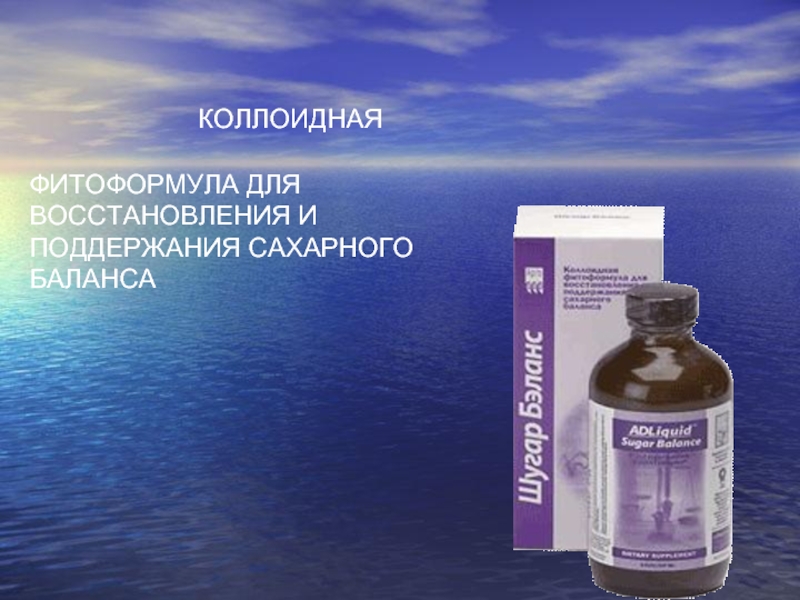 Слайд 13 КОЛЛОИДНАЯ ФИТОФОРМУЛА ДЛЯ ВОССТАНОВЛЕНИЯ И ПОДДЕРЖАНИЯ САХАРНОГО БАЛАНСА
