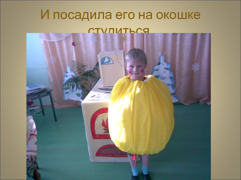 Слайд 5А Колобок - прыг с окошка и побежал по дорожке. Прибежал