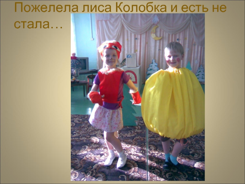 Слайд 11Пожелела лиса Колобка и есть не стала…