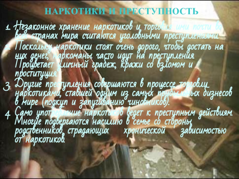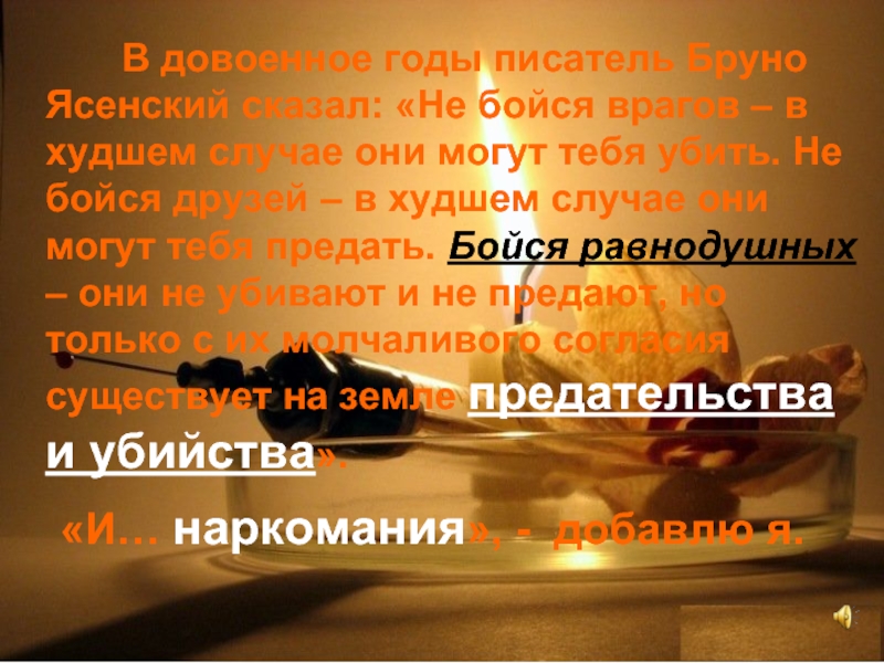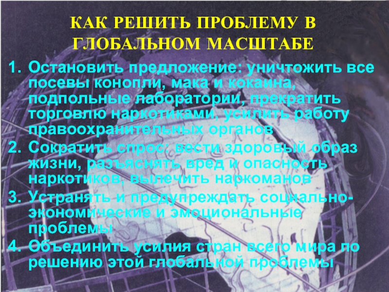 «Сегодня в мире около 190 миллионов наркоманов. Ни одна страна не защищена от этого бедствия. И внутри одного какого-либо государства покончить с этим злом невозможно. Для борьбы с наркобизнесом, охватившим всю планету, необходимы усилия всех стран»