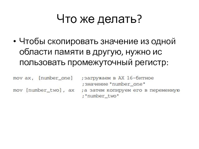 Следующая команда копирования значения, находящегося по адресу number_one, в область памяти с адресом number_two, недопустима: