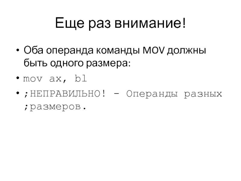 ;НЕПРАВИЛЬНО! - Операнды разных ;размеров.