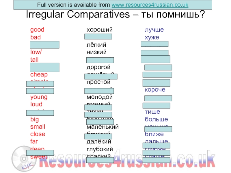 Переведите рабочий листок и запомните слова