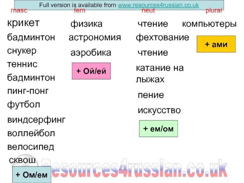 Спортсмены увлекаются ... + INSTR