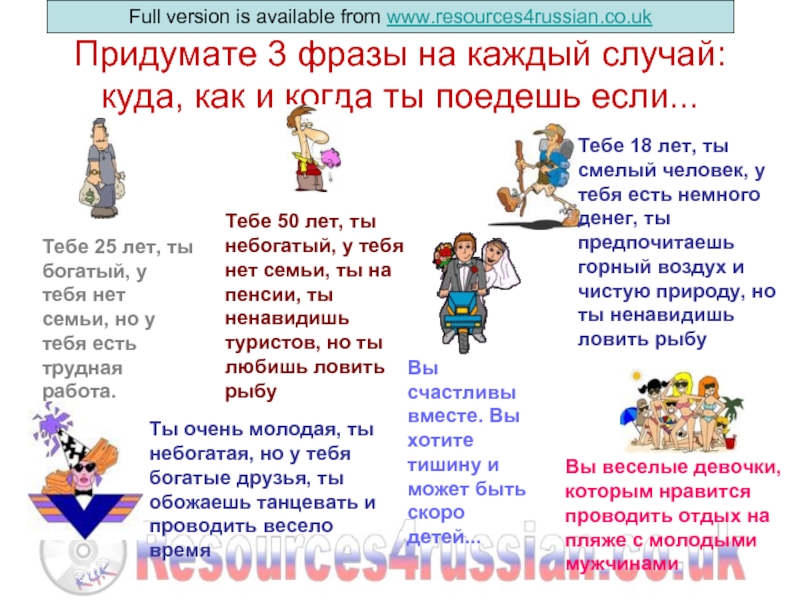 Тебе 18 лет, ты смелый человек, у тебя есть немного денег, ты предпочитаешь горный воздух и чистую природу, но ты ненавидишь ловить рыбу