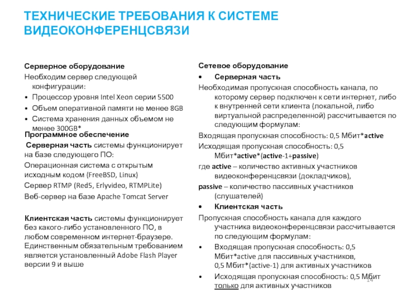 Пропускная способность канала для каждого участника видеоконференцсвязи рассчитывается по следующим формулам: