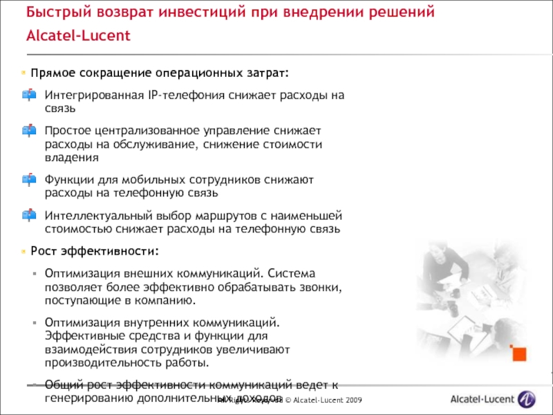 Спектр решений Alcatel оптимизирован для каждого сегмента рынка