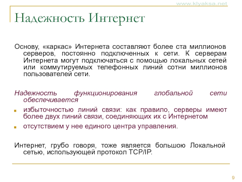 избыточностью линий связи: как правило, серверы имеют более двух линий связи, соединяющих их с Интернетом