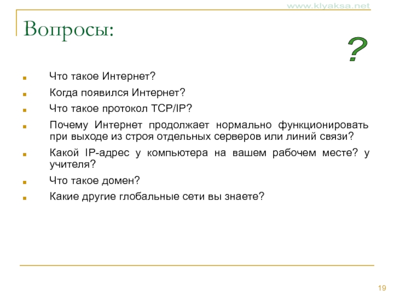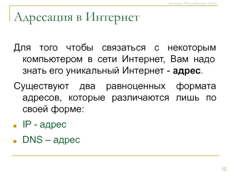Интернет, Вам надо знать его уникальный Интернет - адрес.