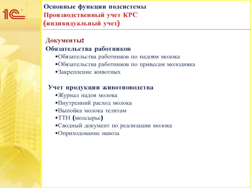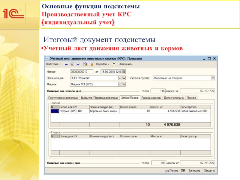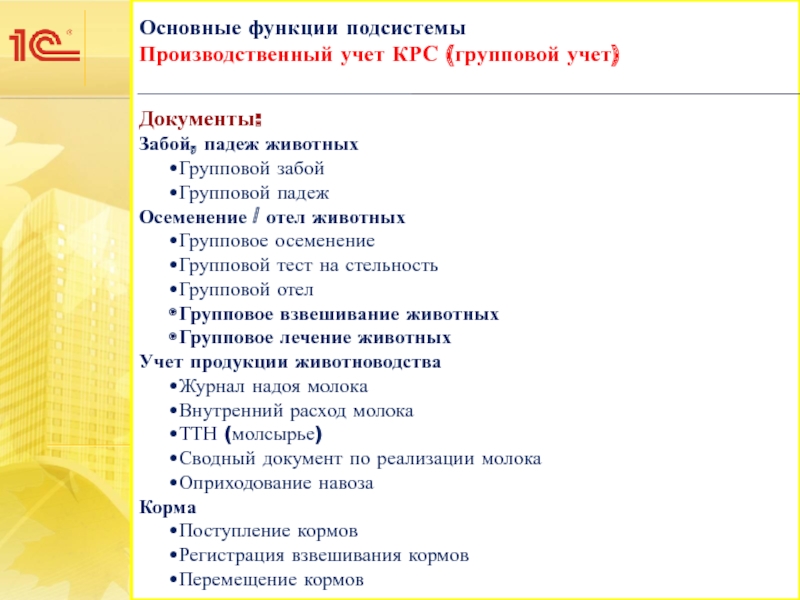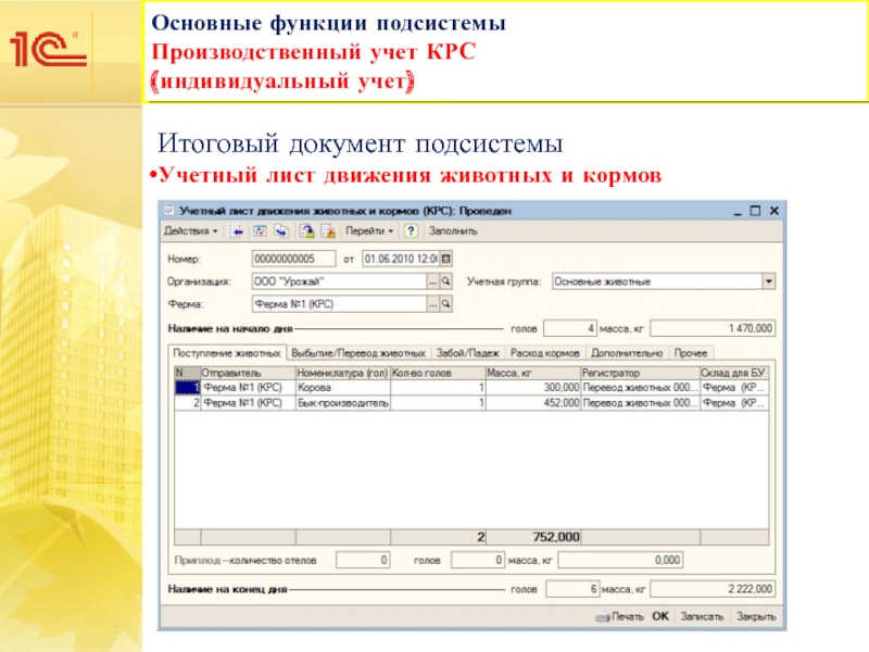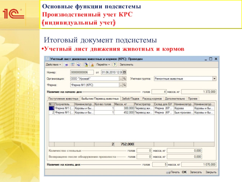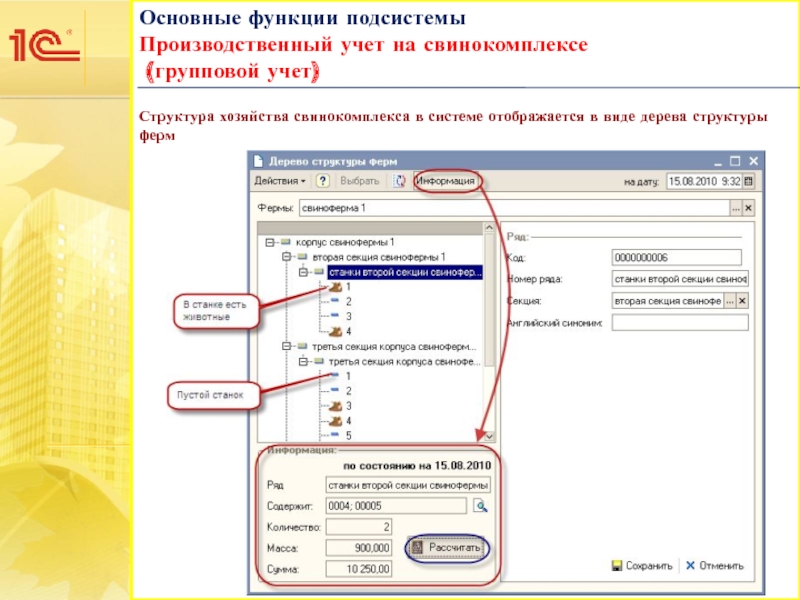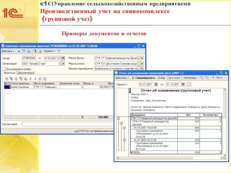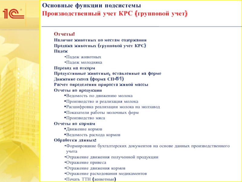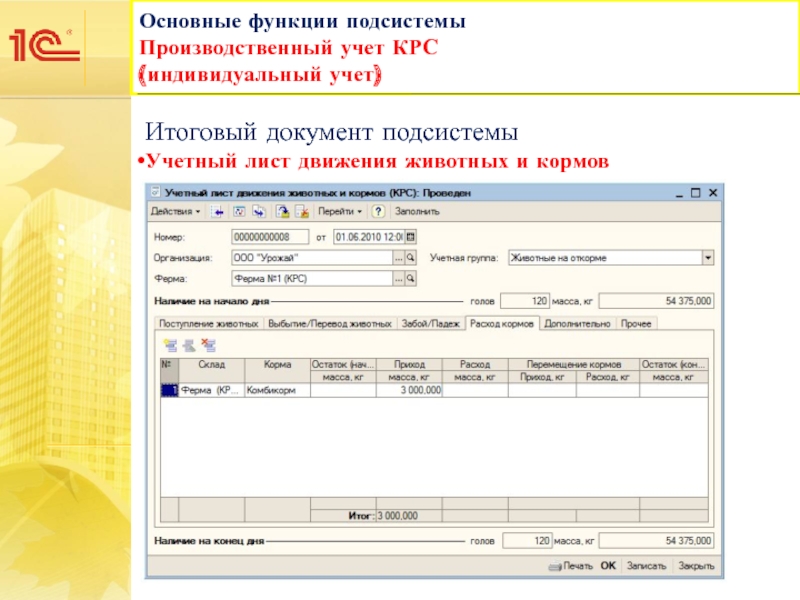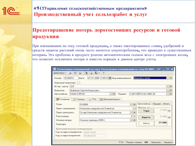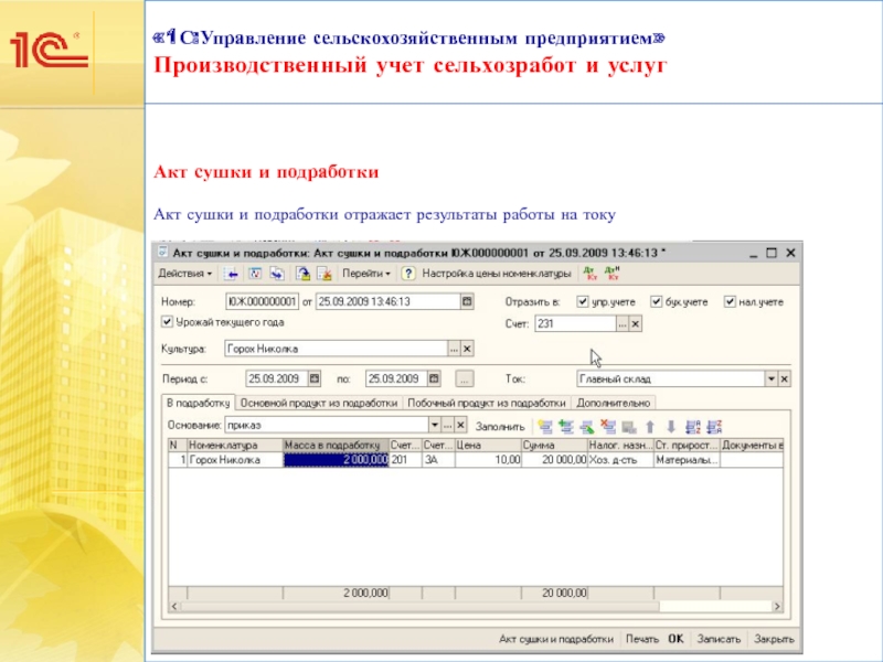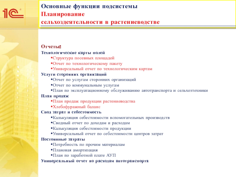 Отраслевое решение позволяет организовать единую информационную систему для управления всеми аспектами деятельности агропредприятия а именно: