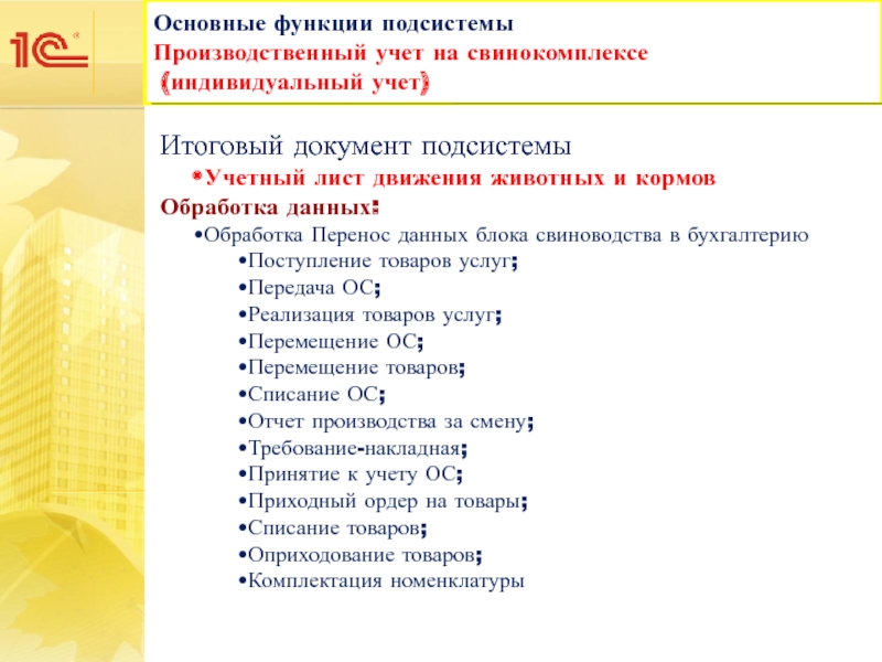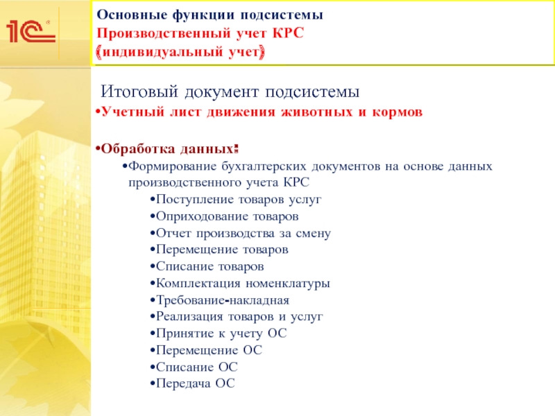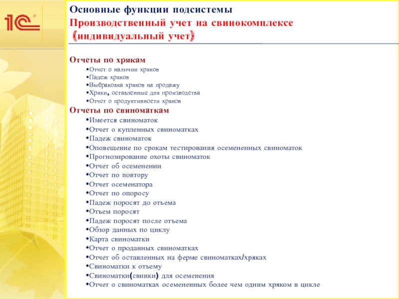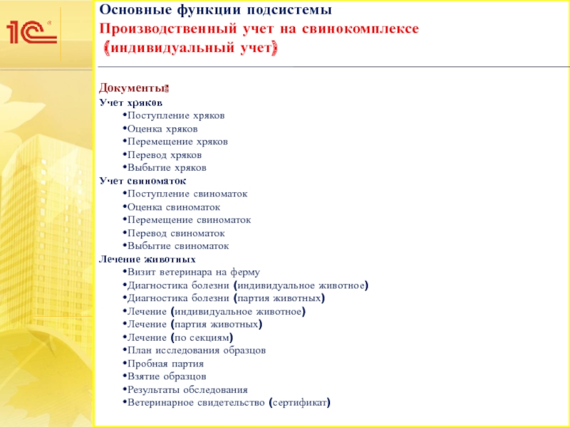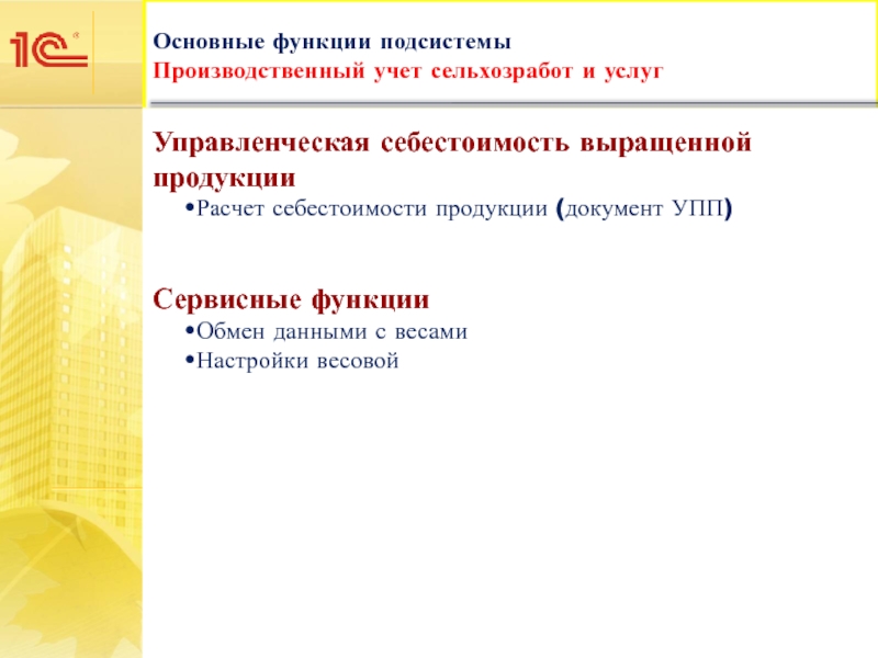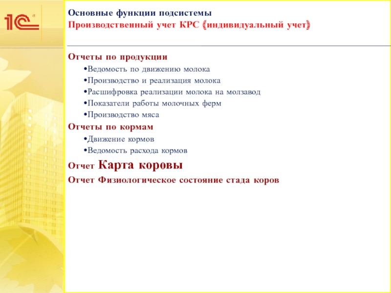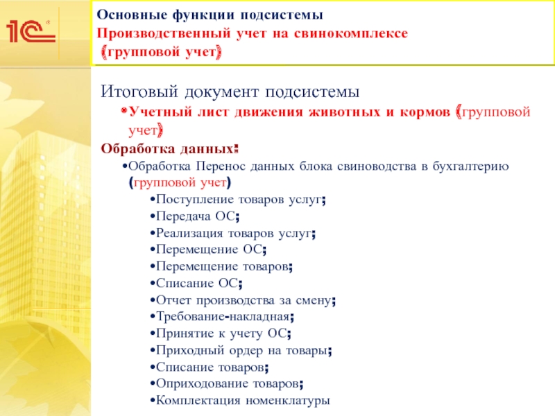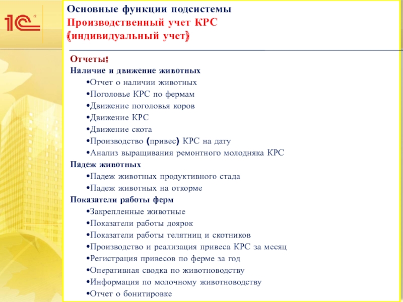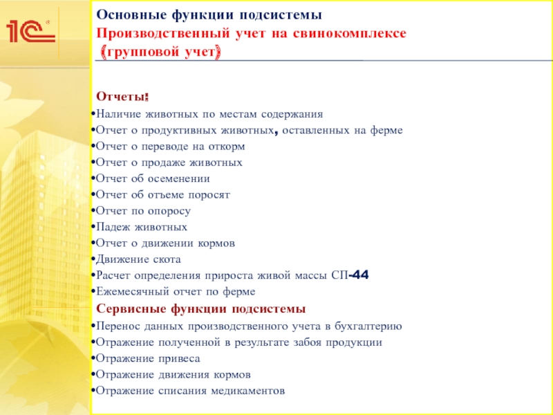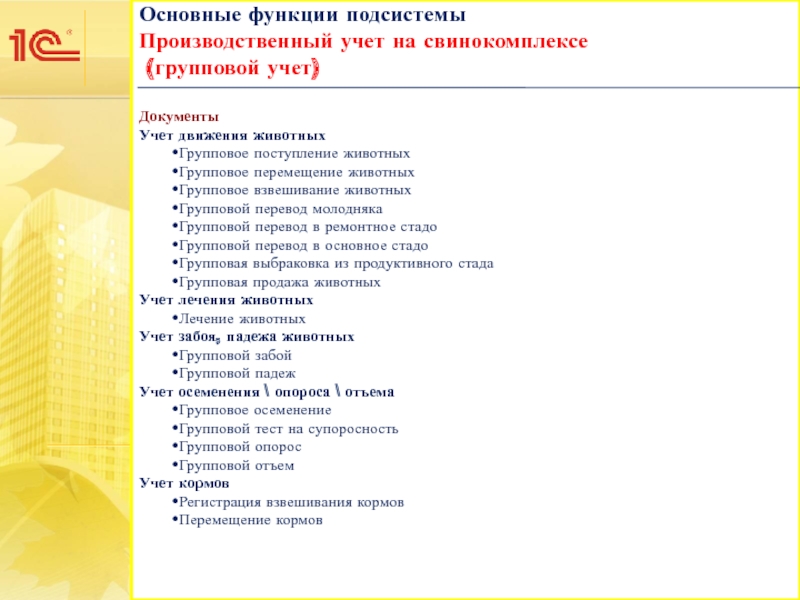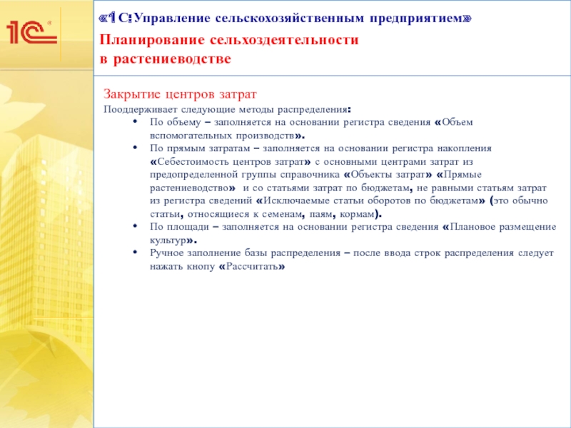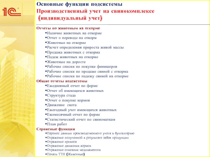 Отраслевое решение позволяет организовать единую информационную систему для управления всеми аспектами деятельности агропредприятия а именно: