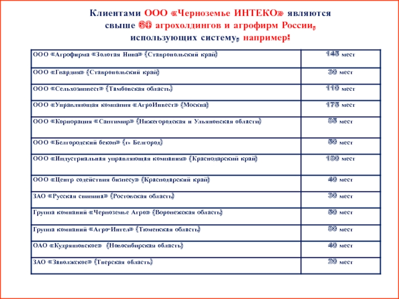Клиентами ООО «Черноземье ИНТЕКО» являются